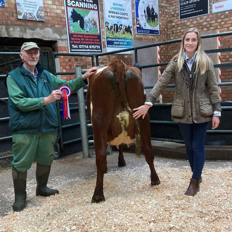 The judge Graham Brindley picked out a powerful third calver from the Amber Herd of Messrs Hole as his champion. By Amber Tornado and out of an 85 point dam, she was sold giving 38kg and was secured by a local purchaser for £1800.
