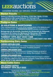 The hottest day on record for the UK meant a quieter sale at Leek, with many farmers deciding to stay at home this week. However, we did see good numbers forward for the Pedigree Dairy Sale and also in the Sheep section.