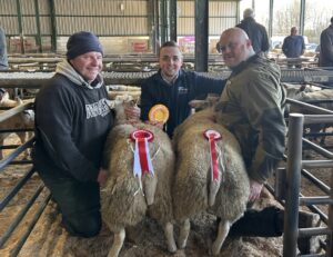 Champion pen of the day came from Wayne Allen of Butterton for an exceptional pair of 53kg lambs that went on to sell for 940p/kg to H Savages Meat Purveyors of Sheffield, grossing just under £500/head. Wayne also won the best heavy pen of five which sold to the judge Rob Davenport at 410p/kg for 55.6kg lambs.